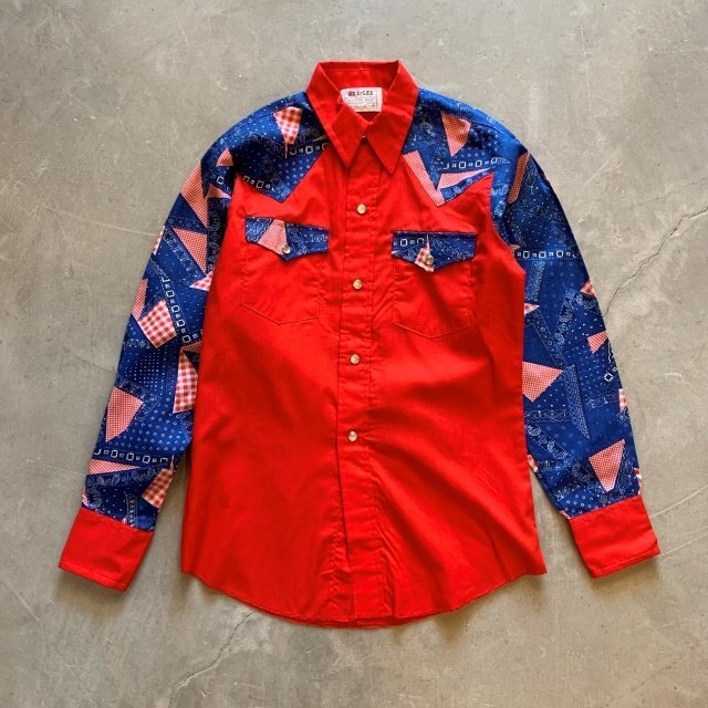 > 【Boys or Ladies】USA製 DEE-CEE 長袖ウエスタンシャツ バンダナ柄 赤■ビンテージ オールド レトロ アメリカ古着 レディース 70s/80s
