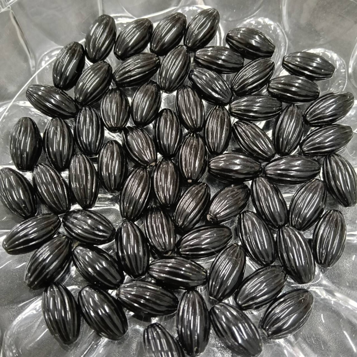 > ☆未使用 大量 プラビーズ オーバル ラウンド ナツメ コメ型 約55g 15×9mm ブラック 黒 ヴィンテージ パーツ アクセ ネックレス B-81