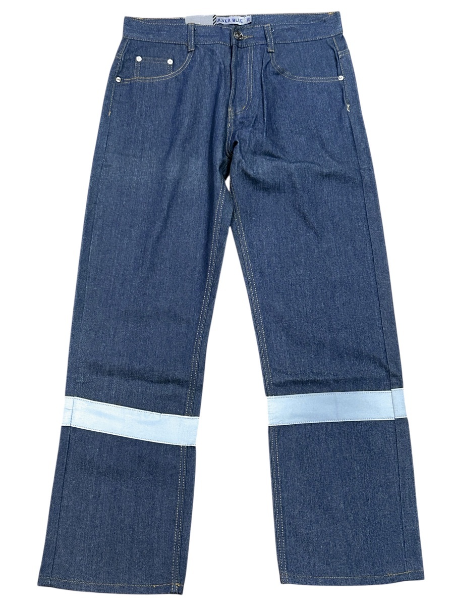 > 新品 USAブランド レア SILVER BLUE シルバーブルー リフレクター付きリジットデニムパンツ W34 デッドストック ジーンズ ワークパンツ