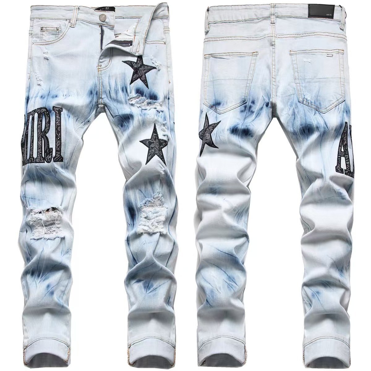 > LRM3301★新品メンズジーンズカジュアルパンツデニムパンツジーパンスキニーパンツGパンダメージロング丈ストレッチブルーW30