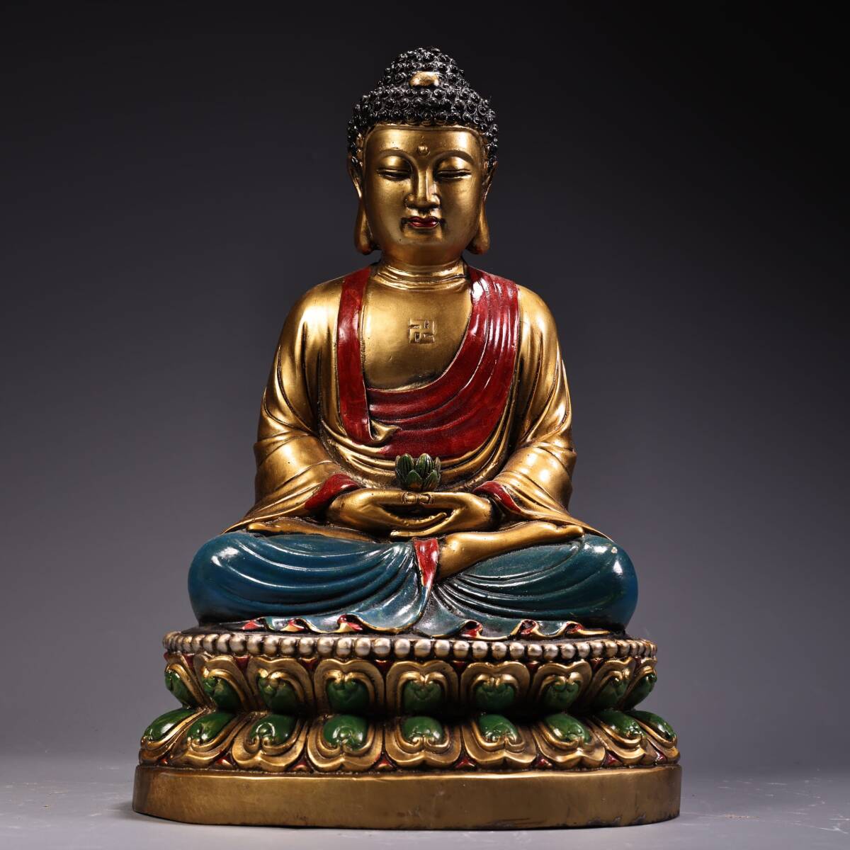 - 『清・銅製・描金・彩繪・如來仏・密宗密教・蔵伝仏像・供養品』極細工 置物 古賞物 中国古玩 中国古美術
