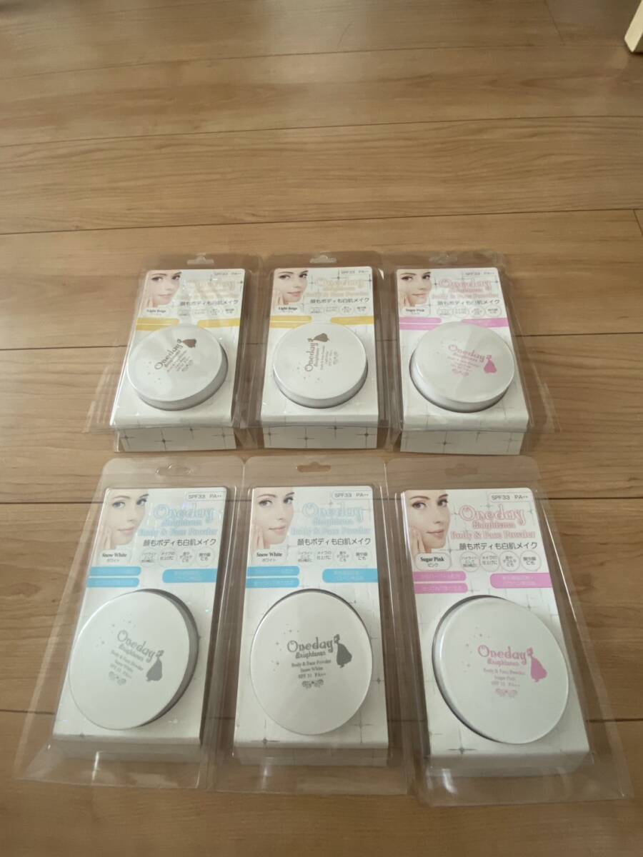 > ◆10 3種類6個セット ワンディブライトナー ボディ&フェイスパウダー ホワイト ピンク ベージュ 白肌 ワントーン ハイライト SPF33/PA++
