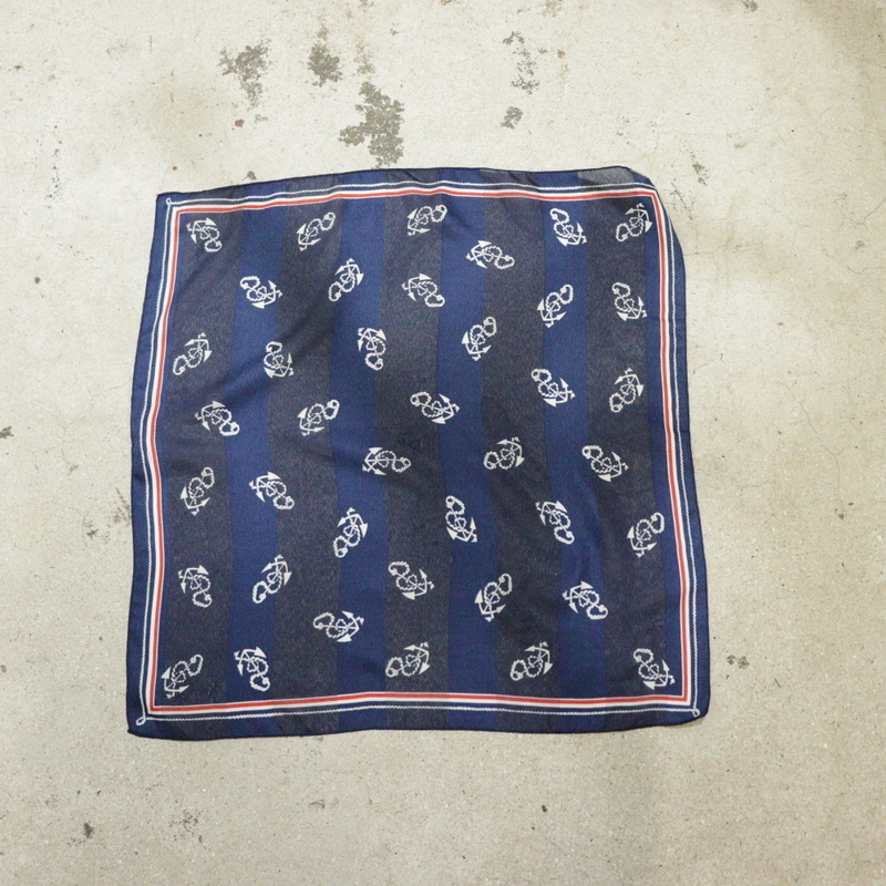 - BD279 90sビンテージ スカーフ■1990年代製 ネイビー 紺 マリン ポリエステル 雑貨 小物 アンティーク 古着 激安 アメカジ ストリート 希少