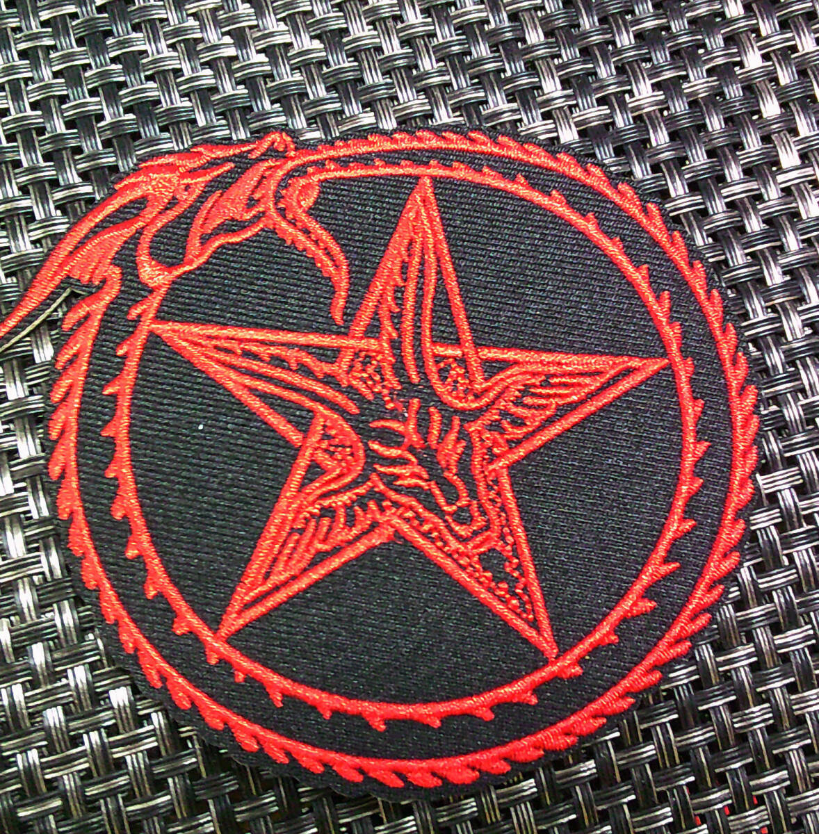 - 《黒赤五芒星US羊龍》赤黒五芒星山羊頭龍円《幸運》五芒星 悪魔 ヤギの頭 ドラゴン オカルトデザイン 刺繍ワッペン◆衣服DIY《開運》