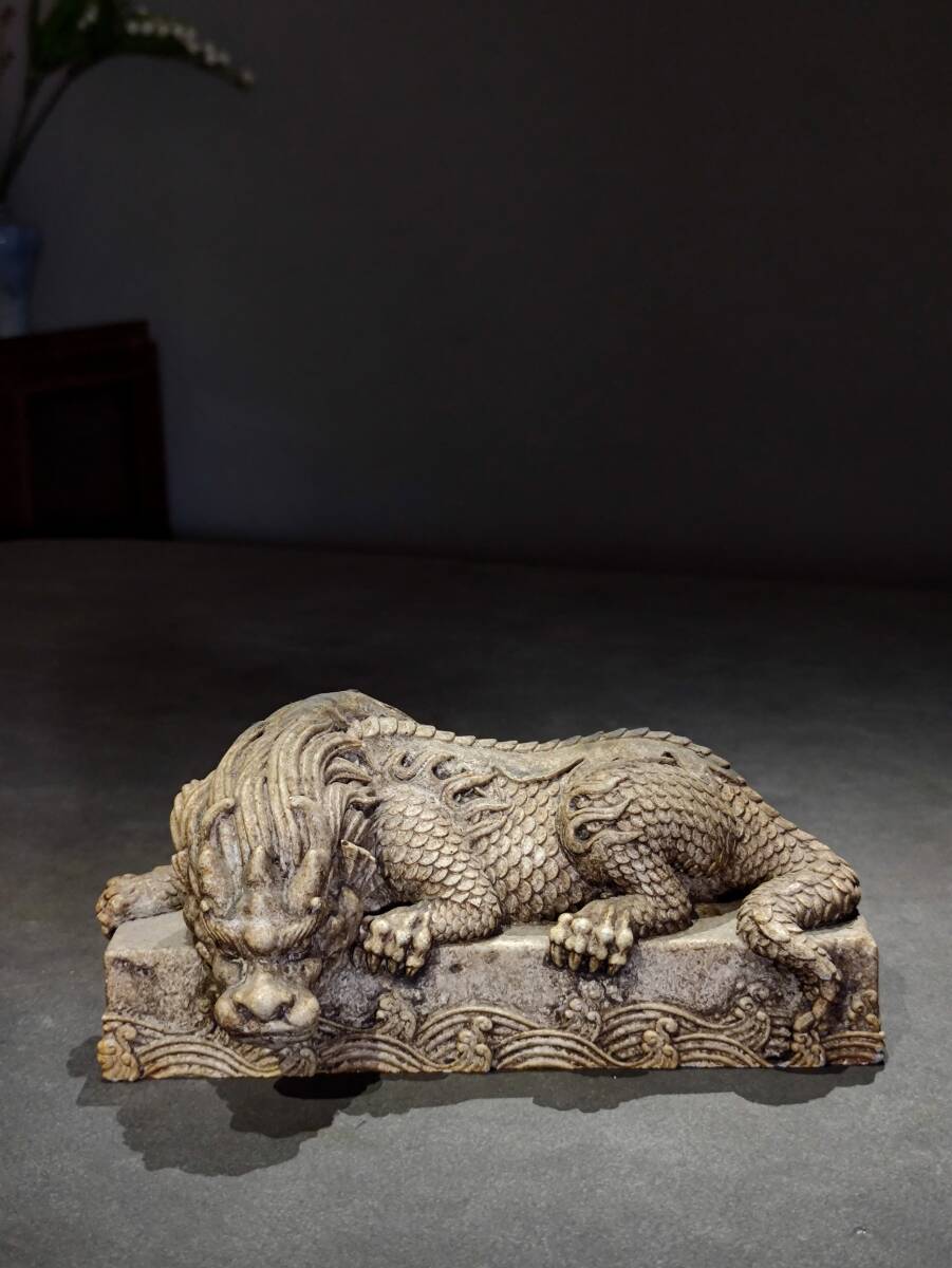 - TM7#5845【3.1】人間国宝 中国骨董 和田玉 玉石 印章 彫刻品【高古玉鶏骨白玉吸水獣】 時代物 本物 珍品旧蔵 伝世家珍