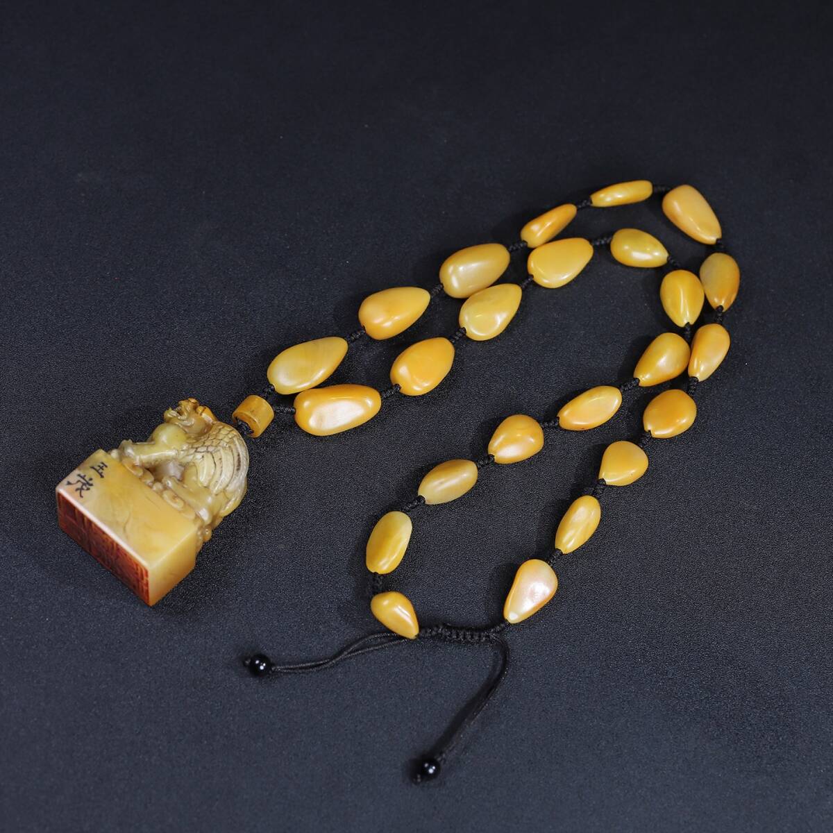 - 早期收藏 古寿山石 瑞獣 項鏈 吊墜 文案置物 極細工 古賞物 古美味 中国唐物 時代物 骨董 中国古美術