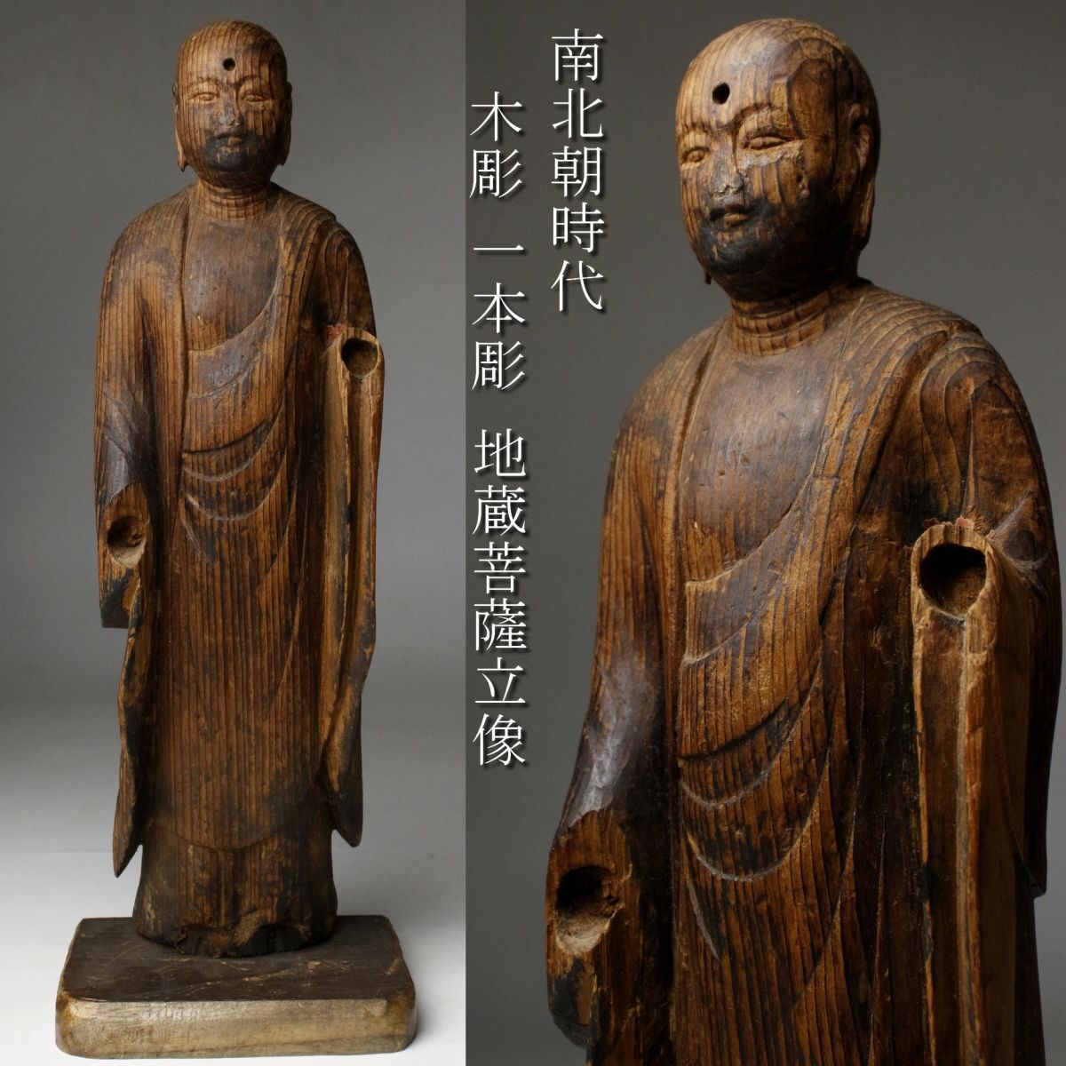 - 【LIG】南北朝時代 木彫 一本彫 地蔵菩薩立像 33.5㎝ 仏像 仏教美術 寺院収蔵品 [.YQ]25.7