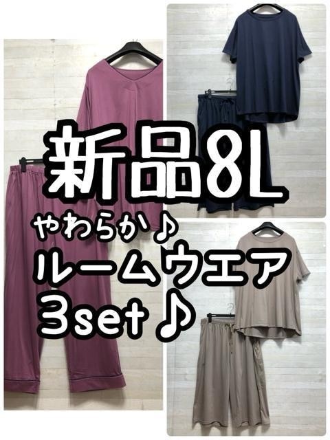 - 新品☆8L♪ルームウエア上下3セット♪Tシャツ・ガウチョ・パジャマ☆G976