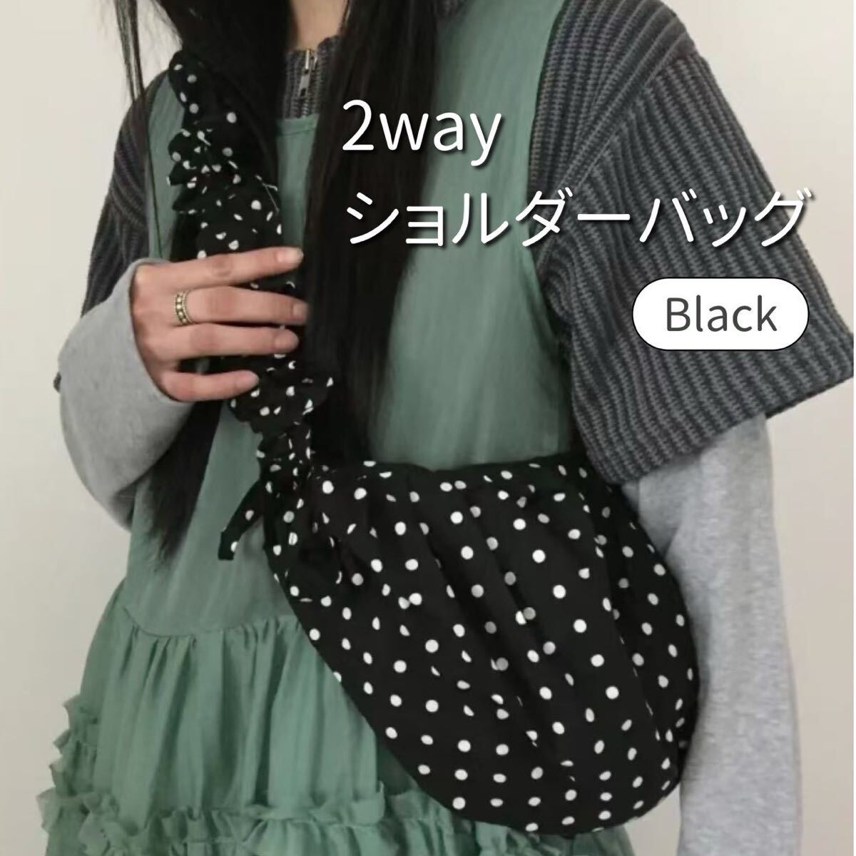 - 新品!くしゅストラップ×水玉 2WAY ショルダーバッグ ブラック