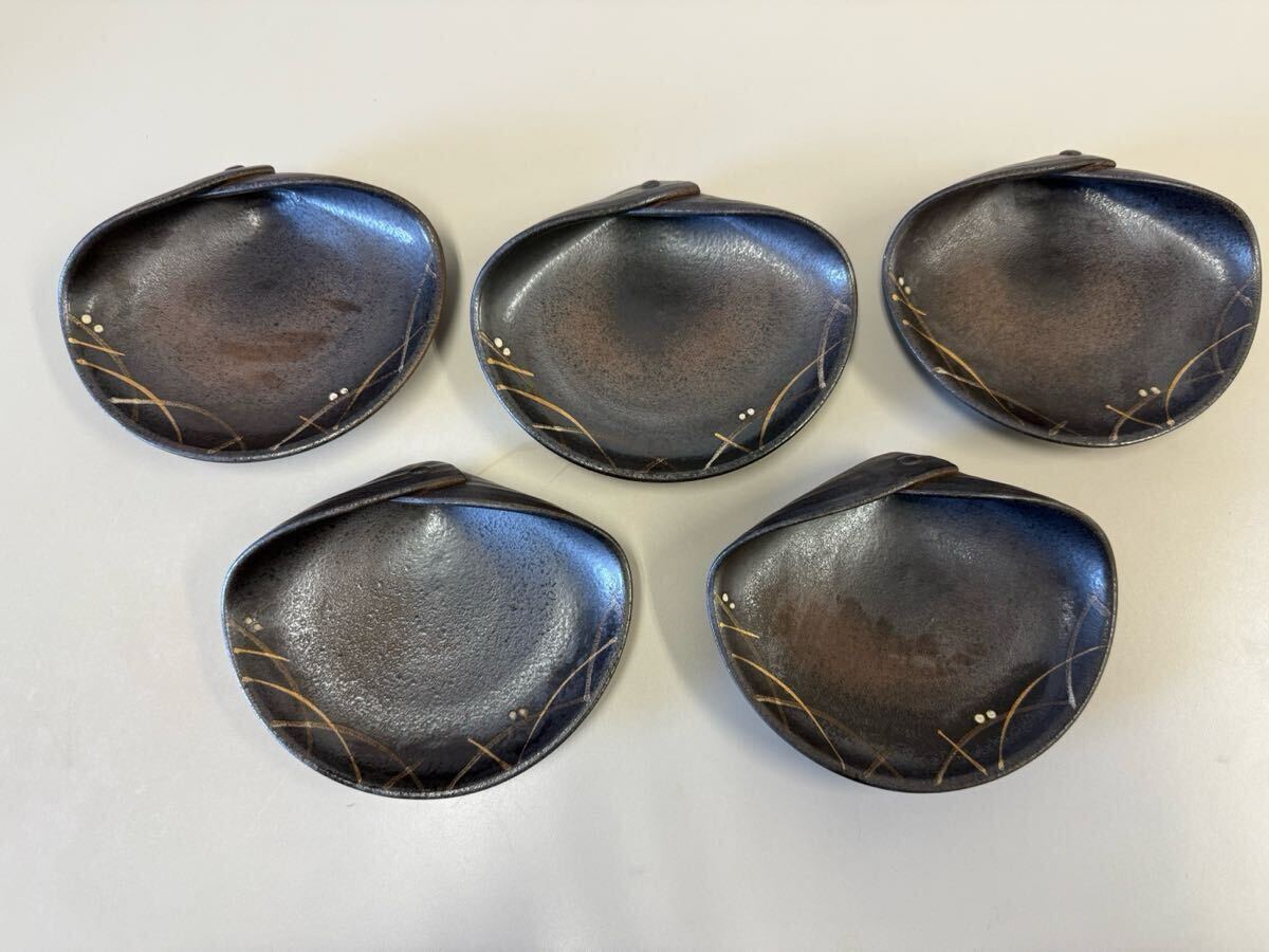 - 五春窯 中皿 和食器5枚セット 貝がらの形の皿★中古