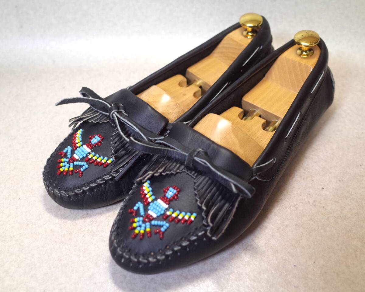 バンプにビーズ刺繍がデザインされたモカシン/スリッポン。