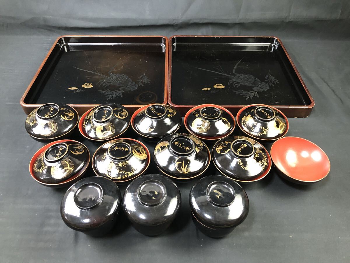- ★時代漆器★お盆 お椀 伊勢海老 金彩 和食器 漆器 漆芸 漆工芸 木製 まとめ 現状品★253★et2013