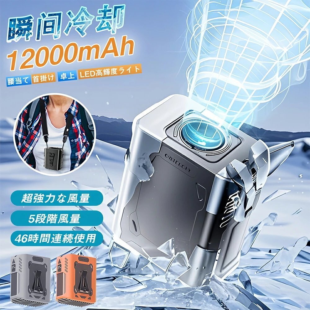 - 腰掛け 扇風機 強力 ベルトファン 腰掛けファン 8000mAh 首掛け 卓上 5段階風量調節 静音設計 小型軽量 オフィス用 屋外作業 熱中症対策