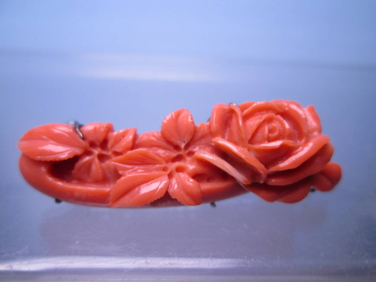 - ☆アンティーク・本珊瑚 花生けに薔薇の花彫刻の帯留め 8,59g