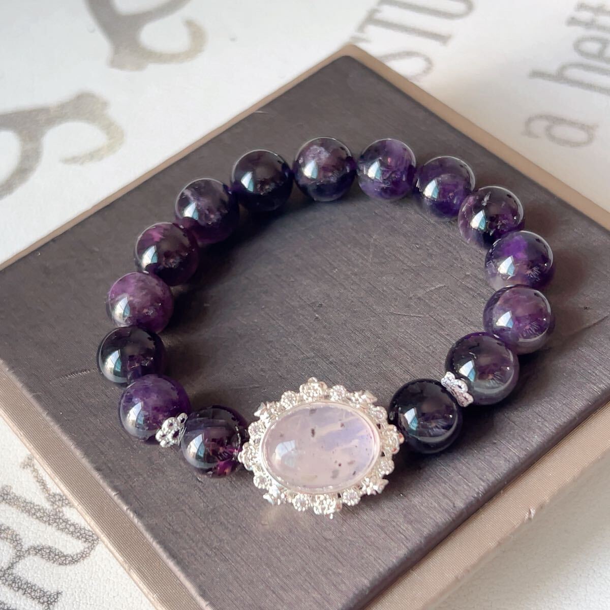 > ◇ウルグアイ産◇紫水晶(色濃いめ)+雲母水晶◇アメジスト◇ブレスレット◇パワーストーン◇天然石◇巾着袋付き◇プレゼントにも 034B73113