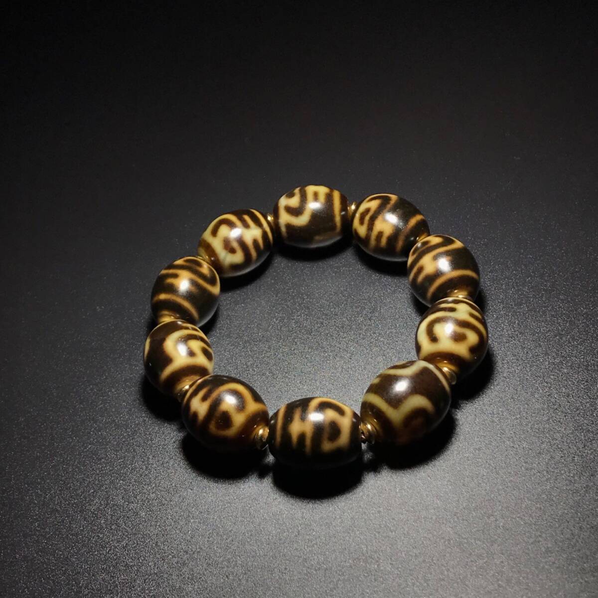 - 蔵友旧蔵出 瑪瑙製 細密彫 黑金 寶瓶達洛天珠手串 高油包漿 根付裝身具 希少珍品 貴重品 置物 古賞物 中国古玩 中国古美術品