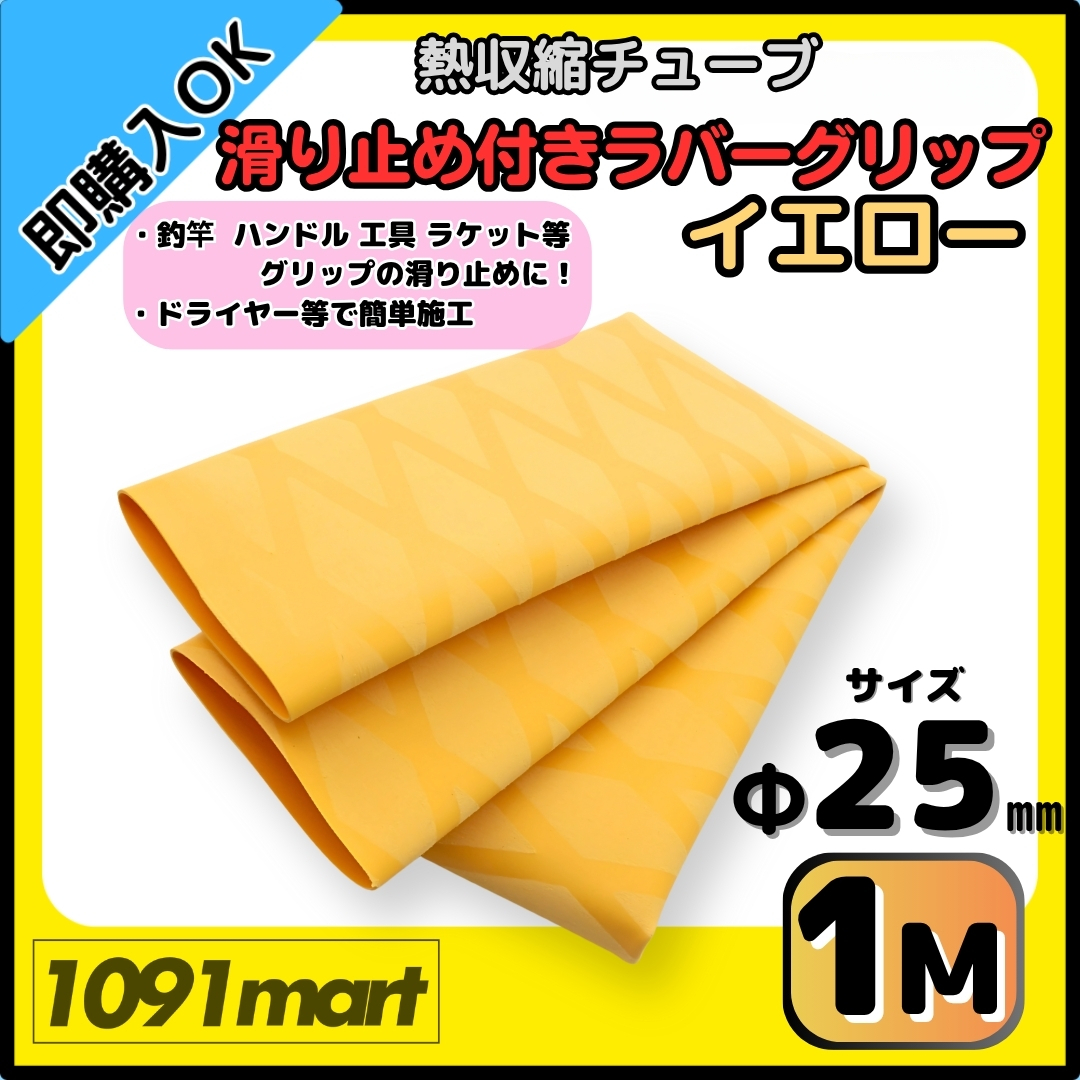 - 【送料無料】熱収縮チューブ ラバーグリップ Φ25㎜ 100㎝ イエロー 滑り止め加工 グリップの補強に 釣竿 工具 ラケット