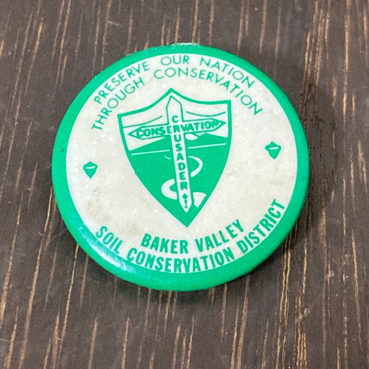 - 缶バッジ コレクション ベイカーバレー 土壌保全地区 Baker Valley Soil Conservation District 盾 海外雑貨 アメリカン雑貨