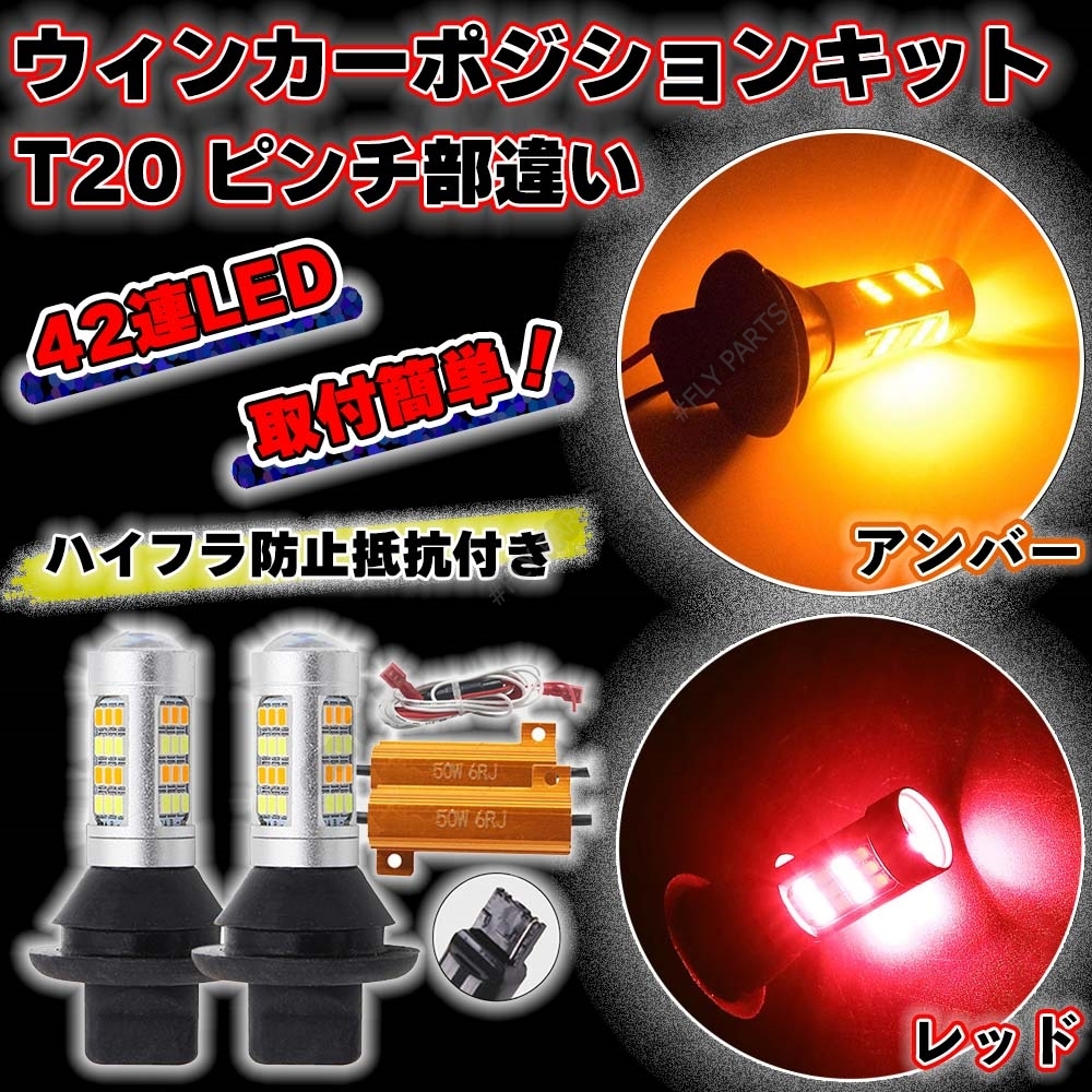 - アンバー レッド T20 2色 ウインカー ポジションキット LED バルブ ハイフラ防止抵抗付き 高輝度 汎用 送料無料