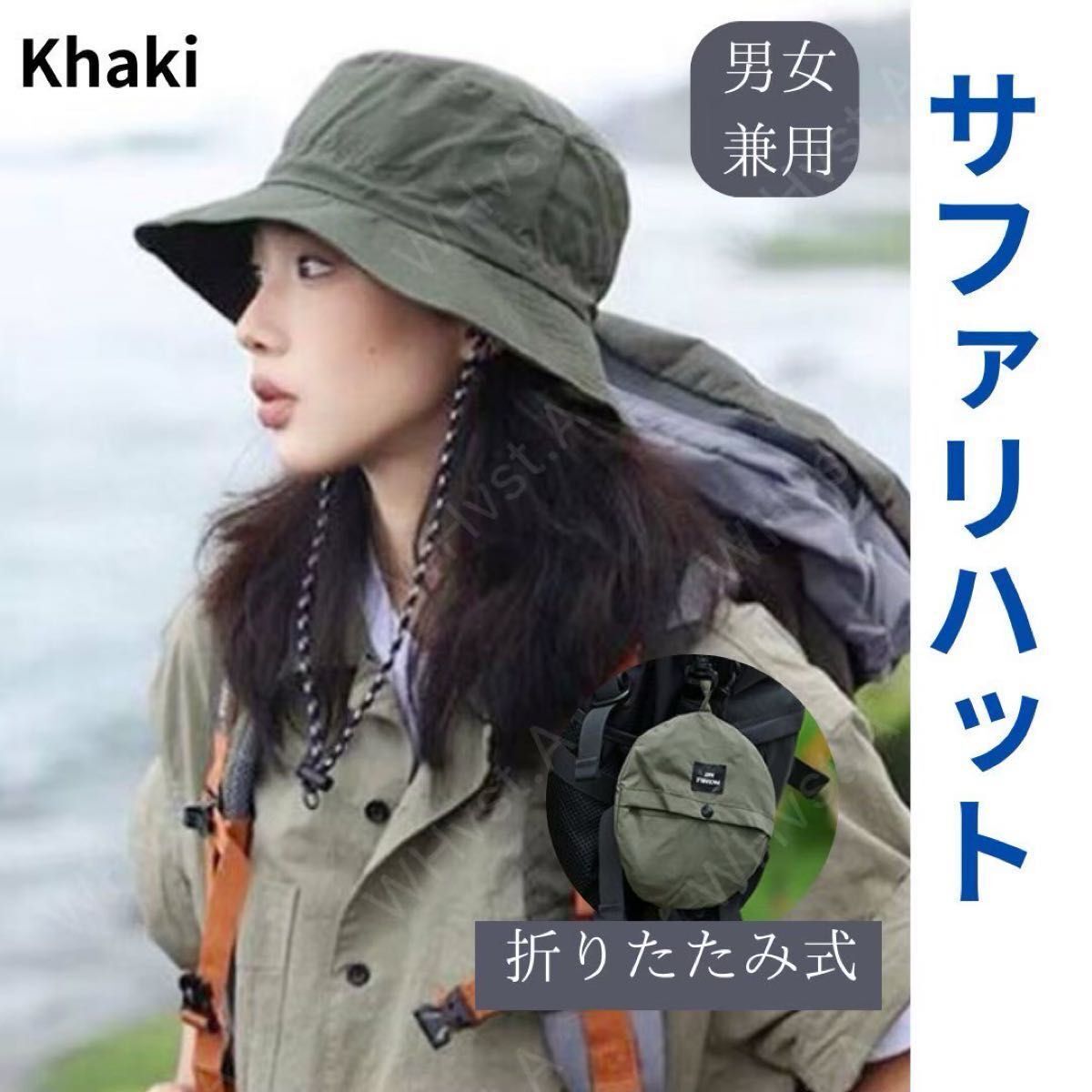- カーキ サファリハット メンズ レディース 折りたたみ コンパクト 帽子 アドベンチャーハット フェス 旅行 アウトドア