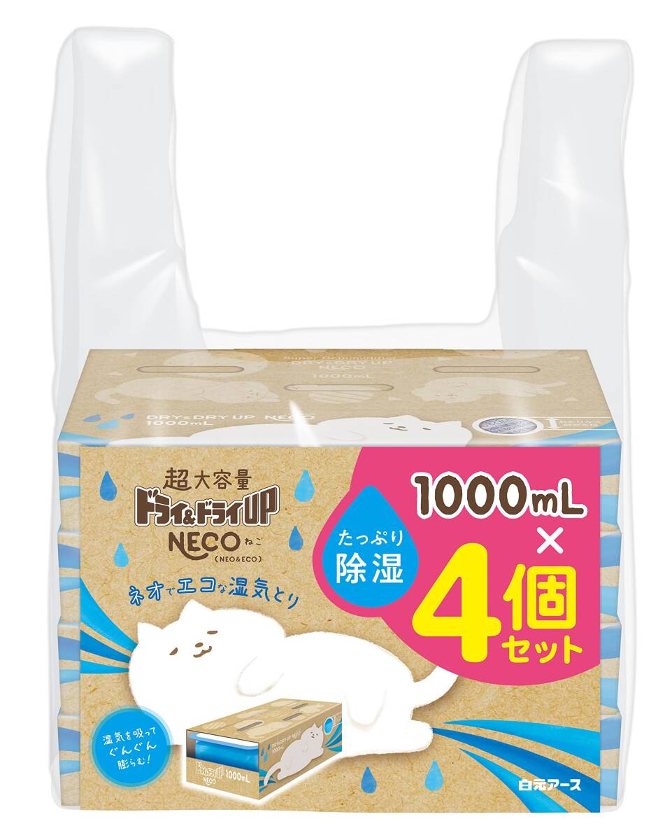 - ドライ&ドライUP NECO 1000mL 4個セット 容量4コ 白元アース 除湿剤