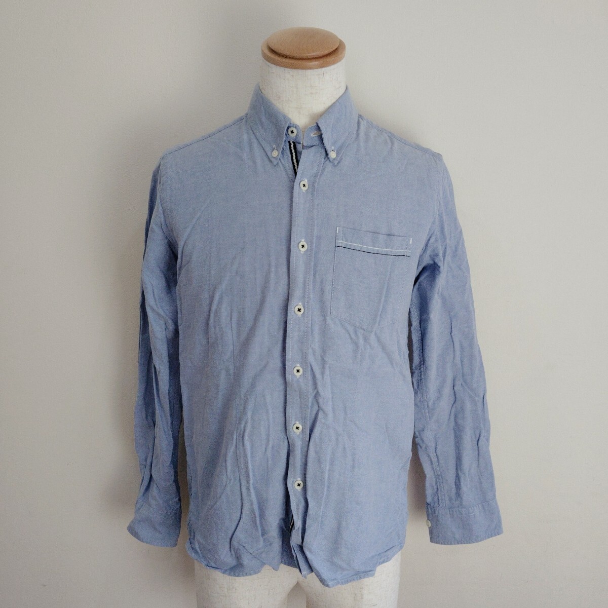 - 0801/M/famock メンズ 長袖シャツ 無地 ボタンダウン ブルー
