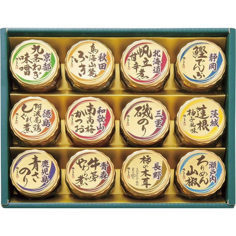 ▼▼▼▼▼▼注意事項▼▼▼▼▼▼・送料込み(送料800円が商品価格に含まれています) 一部地域では追加送料あり。・お取り寄せ商品です。弊社にて手配後、メーカー・卸業者からの直送になります。・まれにメーカー欠品、出荷遅延等が発生致します。問題発生時は別途メールにてご連絡致します。・配送方法の指定、日時指定、置き配、ギフト対応、他商品との同梱配送などは対応できません。・まとめ買いや複数購入の場合は通常より発送に時間が掛かる場合がございます・複数個口の場合、2階以上への搬入ができない場合があります。(その場合は1階での受け渡しとなります)・大型連休、お盆、年末年始などは発送をお休みさせていただく場合がございます・メーカー都合により、パッケージは予告なく変更される場合がございます・梱包用のダンボールはリサイクル品を使用させていただきます。・注文に関するご連絡(注文確定通知・発送通知など)はメールでご案内させていただきます※商品ページの内容について、少しでもご不明な点などがございましたら購入前に一度ご連絡ください▲▲▲▲▲▲注意事項▲▲▲▲▲▲〇商品説明ふる里の自然の味覚を日本全国から選りすぐり良い素材を惜しまずに使った佃煮の詰合せ。〇商品仕様【パッケージサイズ】350×55×280mm【内容】京都九条ねぎ味噌90g・秋田鳥海山麓ふき45g・三重磯のり90g・静岡鰹でんぶ45g・鹿児島青さのり90g・徳島阿波尾鶏しぐれ煮55g・青森牛蒡やわらか煮55g・和歌山南高梅かつお90g・長野柿の木茸85g・瀬戸内ちりめん山椒40g・北海道帆立甘辛煮55g・茨城蓮根柚子風味55g×各1【アレルゲン】小麦【生産国】日本【パッケージ形態】化粧箱入【保存方法】常温【賞味期限】製造日より約540日(出典:umaimon)