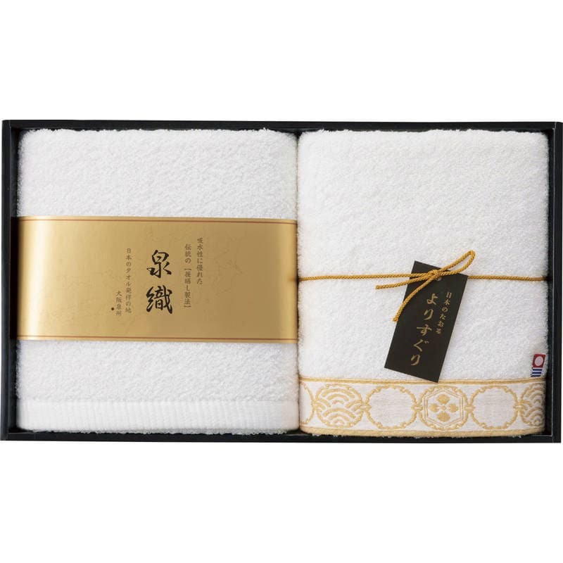▼▼▼▼▼▼注意事項▼▼▼▼▼▼・送料込み(送料800円が商品価格に含まれています) 一部地域では追加送料あり。・お取り寄せ商品です。弊社にて手配後、メーカー・卸業者からの直送になります。・まれにメーカー欠品、出荷遅延等が発生致します。問題発生時は別途メールにてご連絡致します。・配送方法の指定、日時指定、置き配、ギフト対応、他商品との同梱配送などは対応できません。・まとめ買いや複数購入の場合は通常より発送に時間が掛かる場合がございます・複数個口の場合、2階以上への搬入ができない場合があります。(その場合は1階での受け渡しとなります)・大型連休、お盆、年末年始などは発送をお休みさせていただく場合がございます・メーカー都合により、パッケージは予告なく変更される場合がございます・梱包用のダンボールはリサイクル品を使用させていただきます。・注文に関するご連絡(注文確定通知・発送通知など)はメールでご案内させていただきます※商品ページの内容について、少しでもご不明な点などがございましたら購入前に一度ご連絡ください▲▲▲▲▲▲注意事項▲▲▲▲▲▲〇商品説明日本のたおるよりすぐり 泉織 日本のタオル二大産地である愛媛 今治タオルと大阪 泉州タオルをギフトセットにしました。今治タオル:綿糸の状態で白く晒してからタオルに織り上げる「先晒し」でふんわりしたタオルに仕上げています。泉州タオル:タオルを織り上げたのち、糊を落とす「晒す」工程があるため、吸水性に優れた使いやすいタオルです。今治タオルブランド認定番号:第2021-1005号〇商品仕様【パッケージサイズ】420×70×240mm【内容】泉州バスタオル:600×1200mm・今治バスタオル:600×1200mm×各1【材質】綿100%【生産国】日本【パッケージ形態】化粧箱入