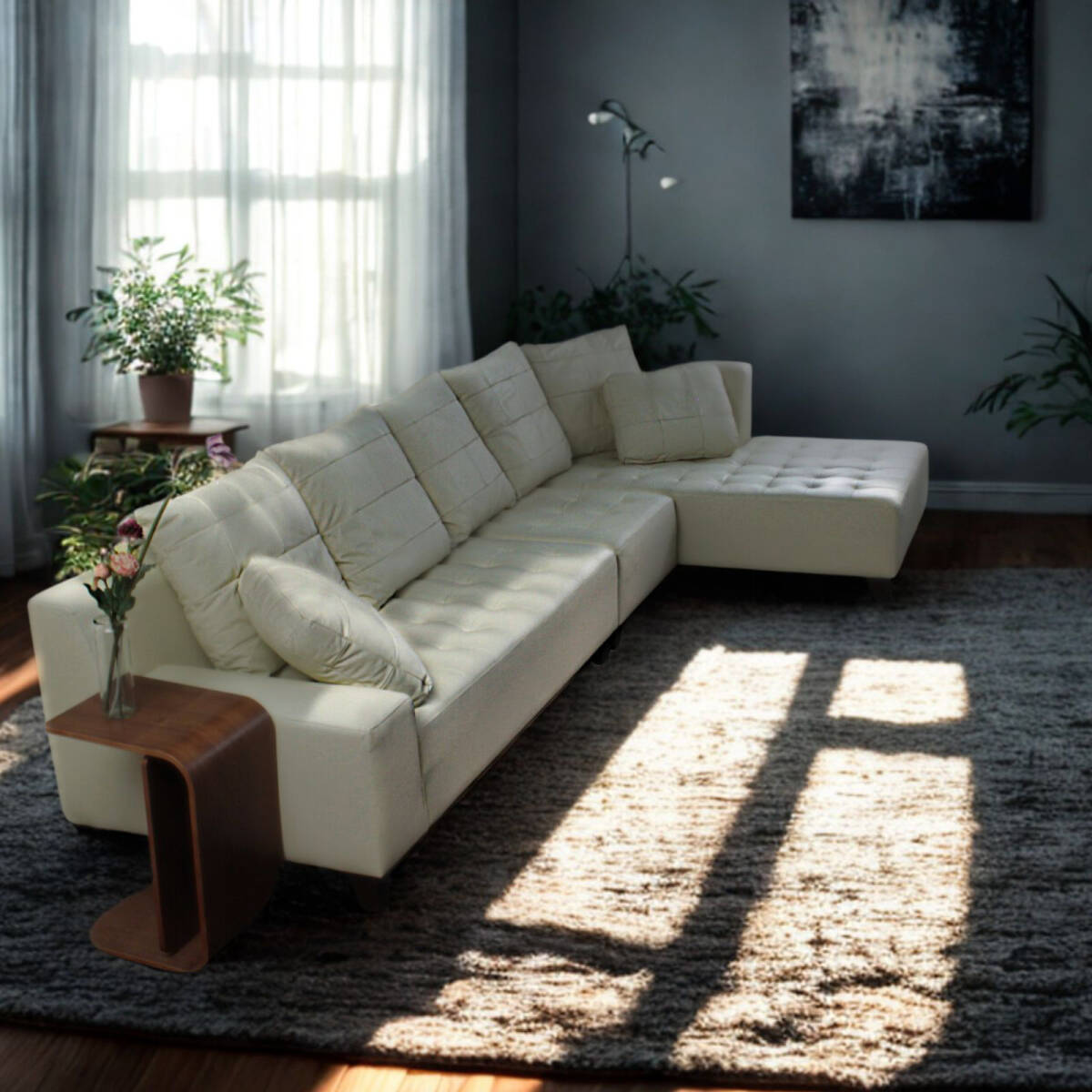- 送料無料 ソファ カウチソファ 4人掛けソファ コーナー L字 オフホワイト 幅306cm 【カウチ座:座って左】 本革 半革 1mm厚 179DP-2PCl