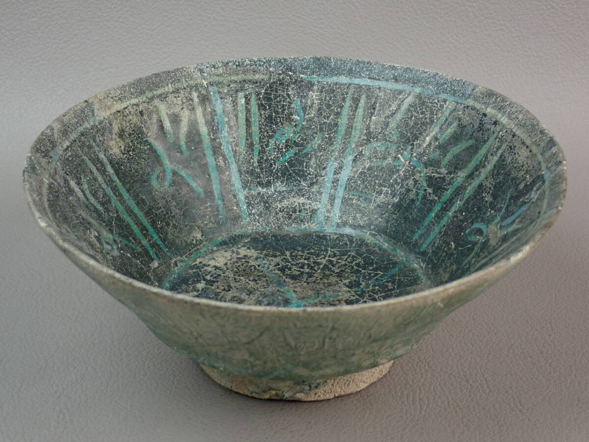 - 【骨董・茶道具】★古い イスラム陶器 古代ペルシャ★★青釉アラビア文字文鉢 gm081zb42 ラスター彩 発掘品 出土品