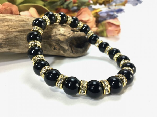 > オニキス パワーストーン ブレスレット 天然石ブレス 10mm メンズ・レディース (ゴールド) 開運 浄化 数珠ブレス ☆