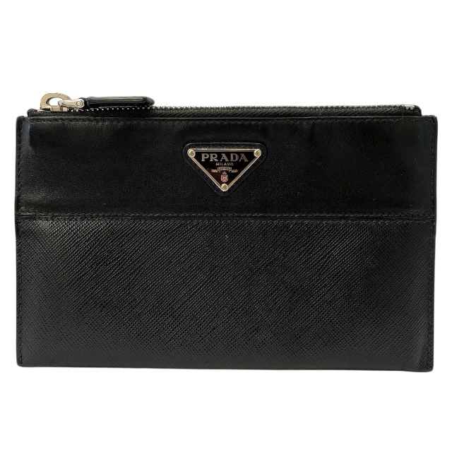 - プラダ ポーチ 2MB030 小物入れ コインケース レザー 三角プレート ロゴ サフィアーノ レザー ブラック PRADA