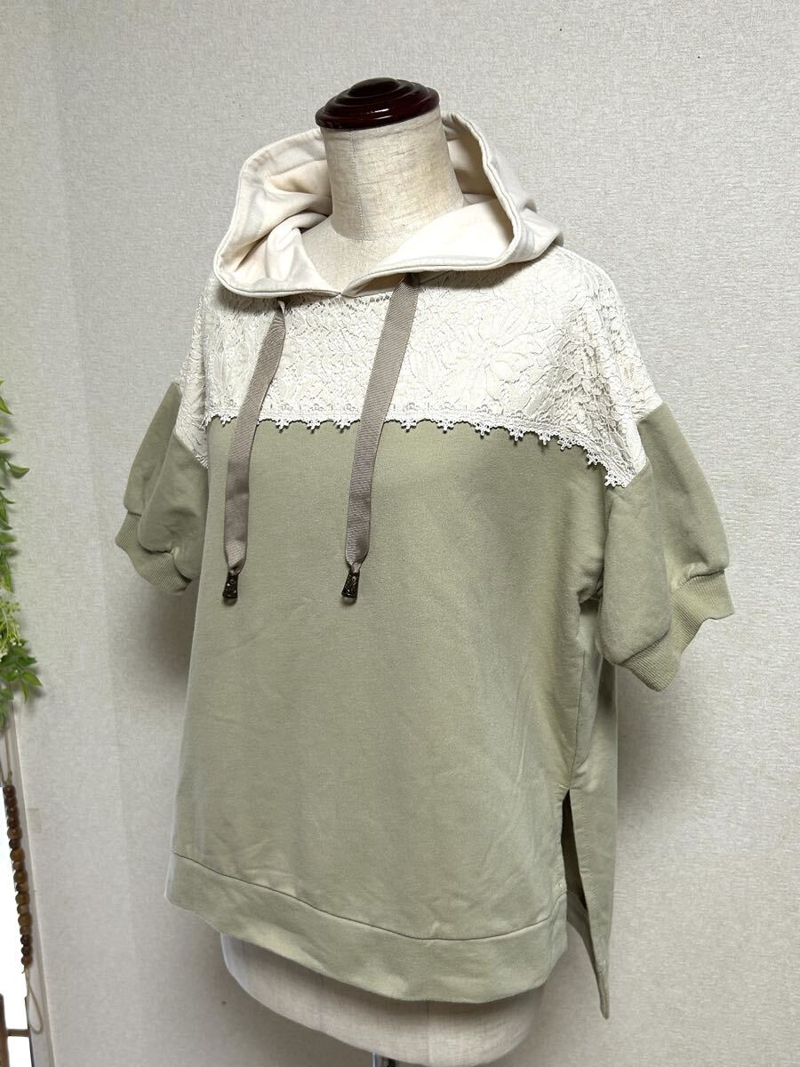 > 【 axes femme ★アクシーズファム】レース切り替えスウェットパーカー・ゆったり・薄手のスウェット・Mサイズ