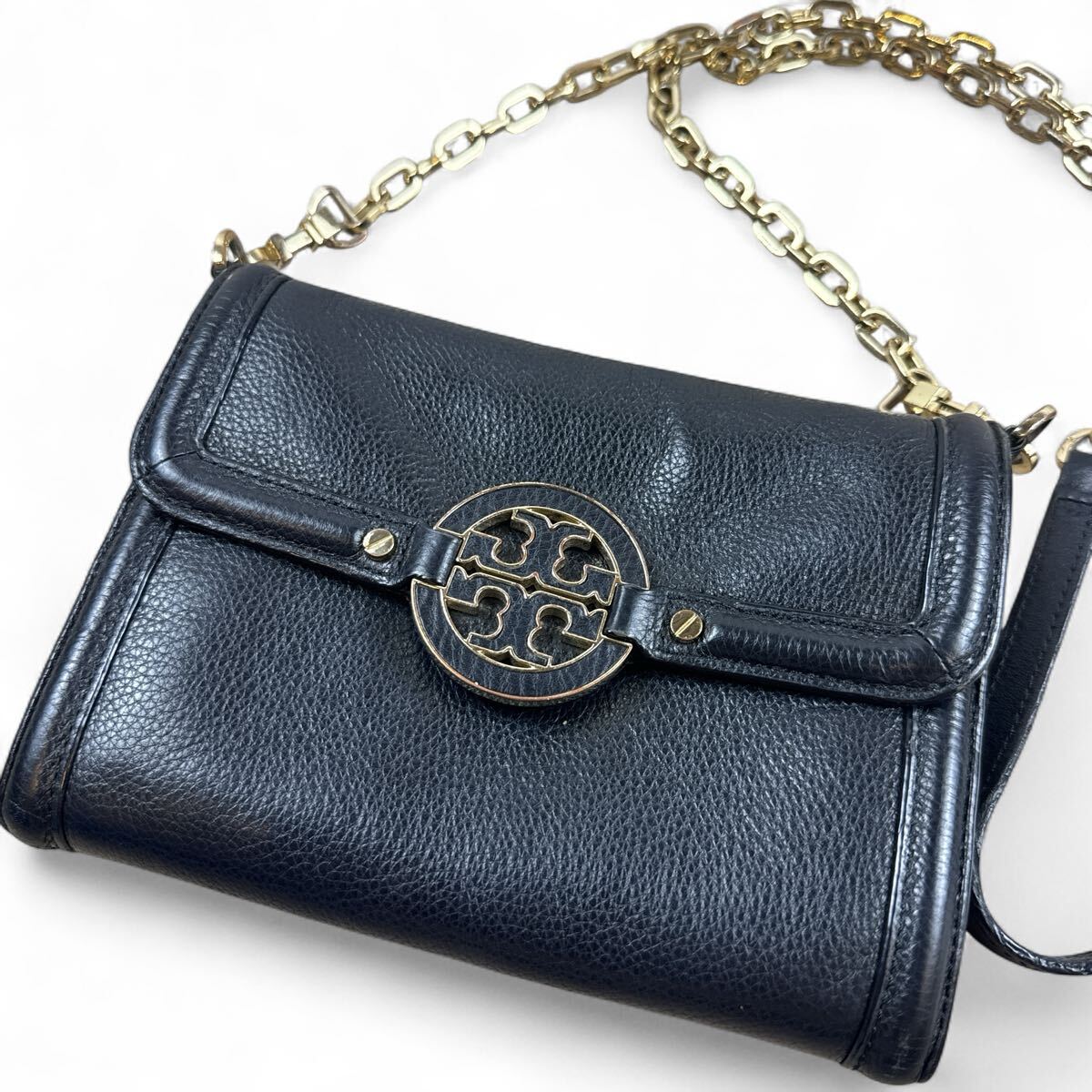 - TORY BURCH トリーバーチ ショルダーバッグ ハンドバッグ ゴールドチェーン レザー ブラック
