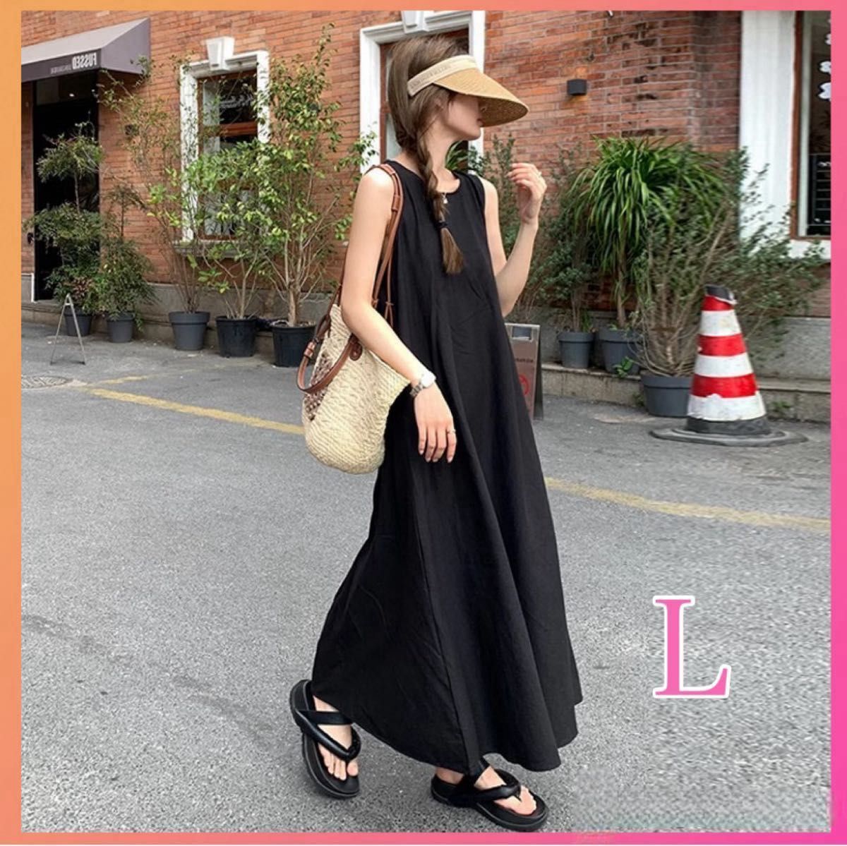 - ロングワンピース L 体型カバー ワンピース ブラック ノースリーブ ゆったり