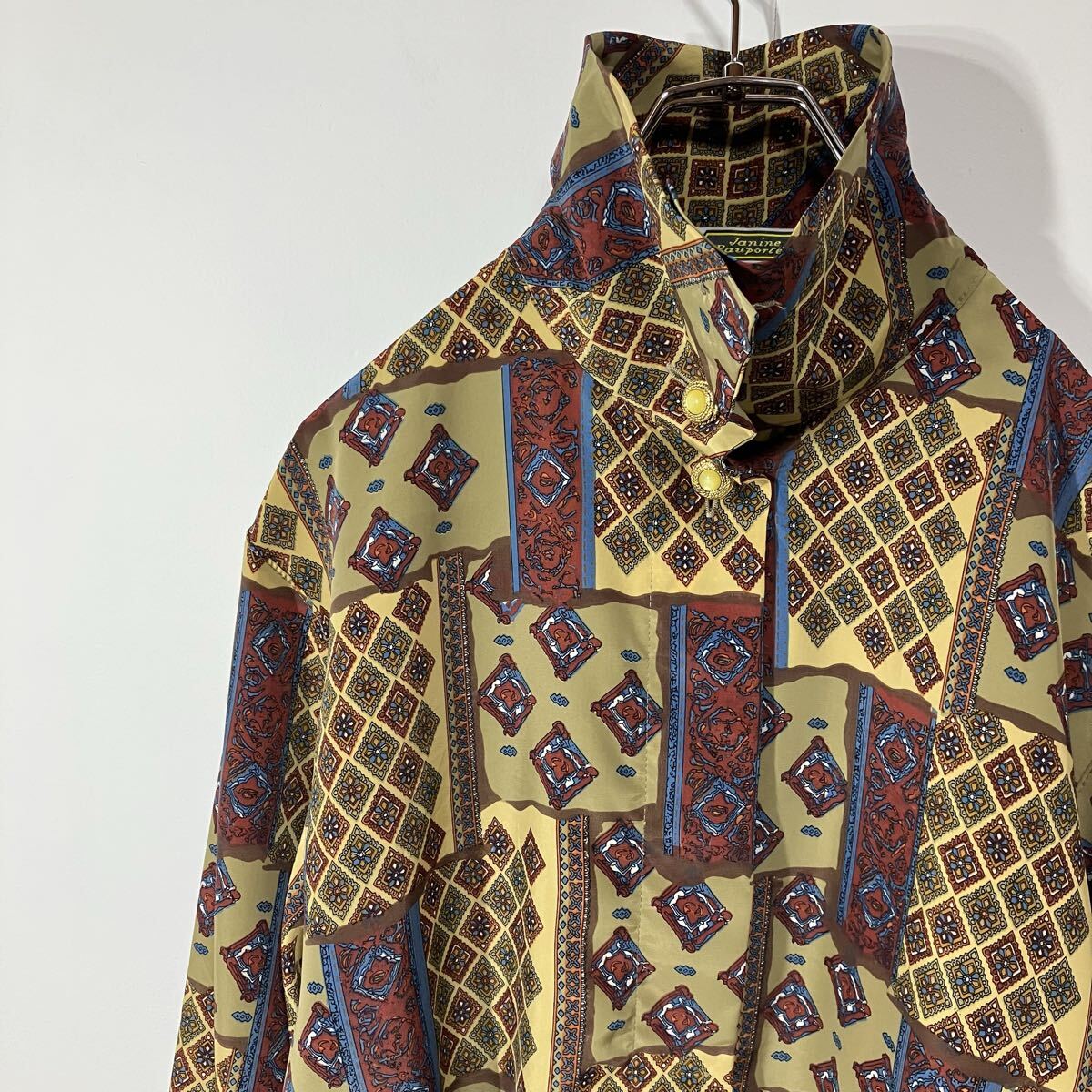 - 古着 ヴィンテージ パターン柄 レトロ ボタン 透け感 フライフロント 薄手 ボタン ポリ ジャケット 2