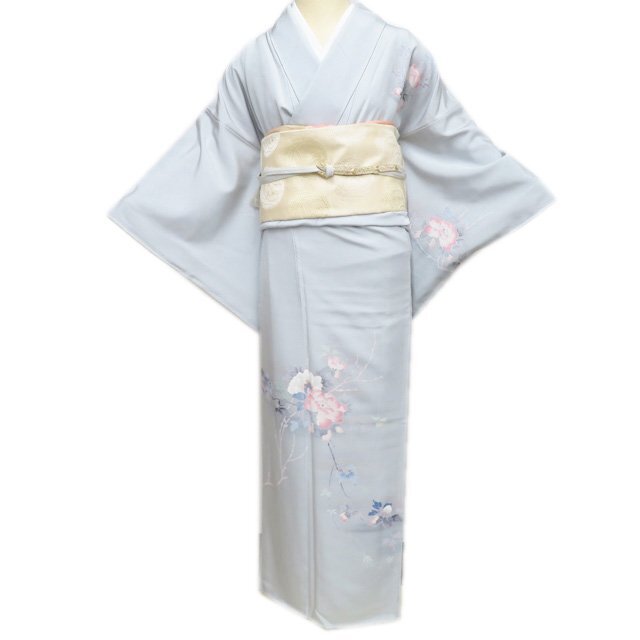 - 付下げ 付け下げ 訪問着 着物 未使用 正絹 袷 花の図 白藍色 多色 身丈157.5cm 裄64.5cm M きもの北條 A1249-7