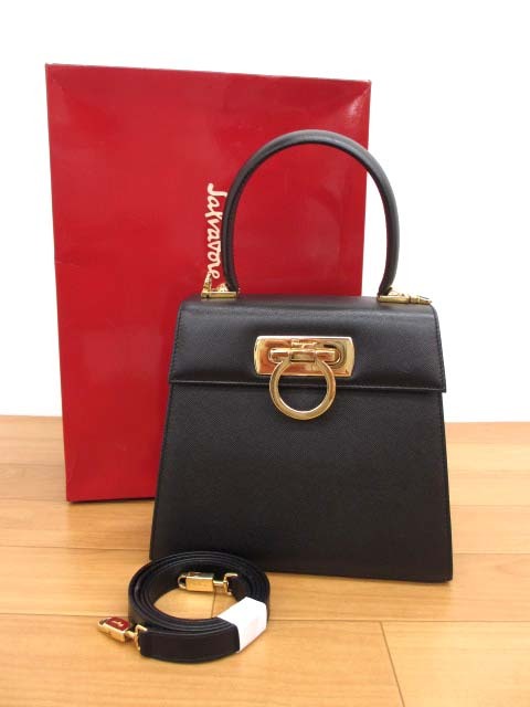 - 美品 フェラガモ 212193 サフィアーノ ガンチーニ 2way ハンドバッグ ショルダーバッグ