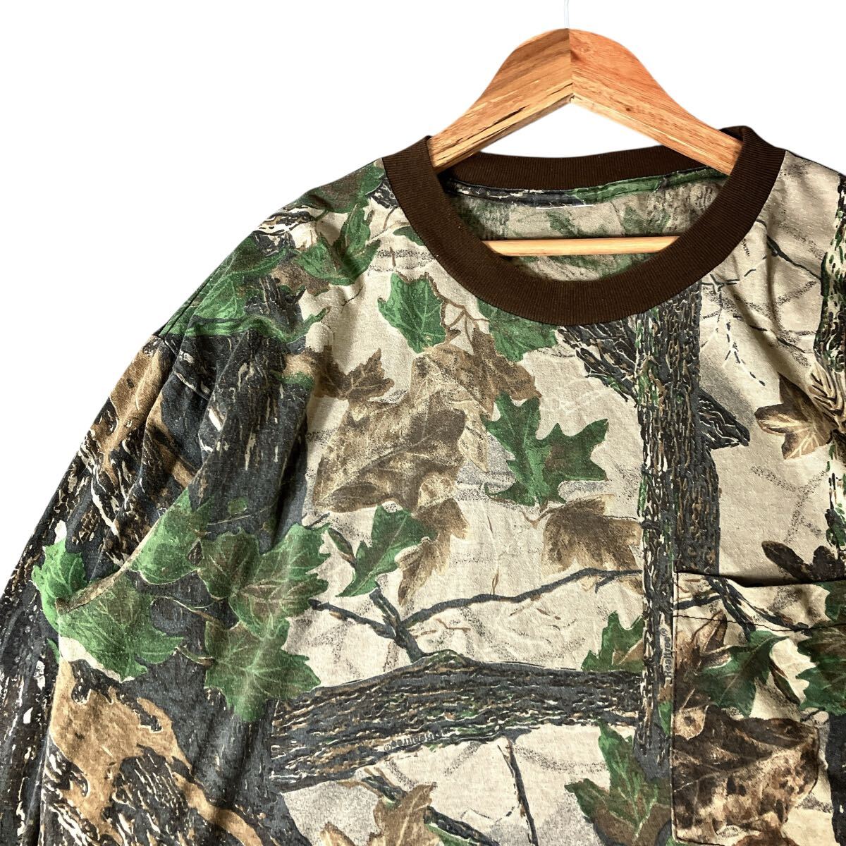 > リアルツリー 裾シングルステッチ 90s 00s リンガー 長袖Tシャツ ロンT ロングスリーブTシャツ 迷彩 カモフラ ツリーカモ XL