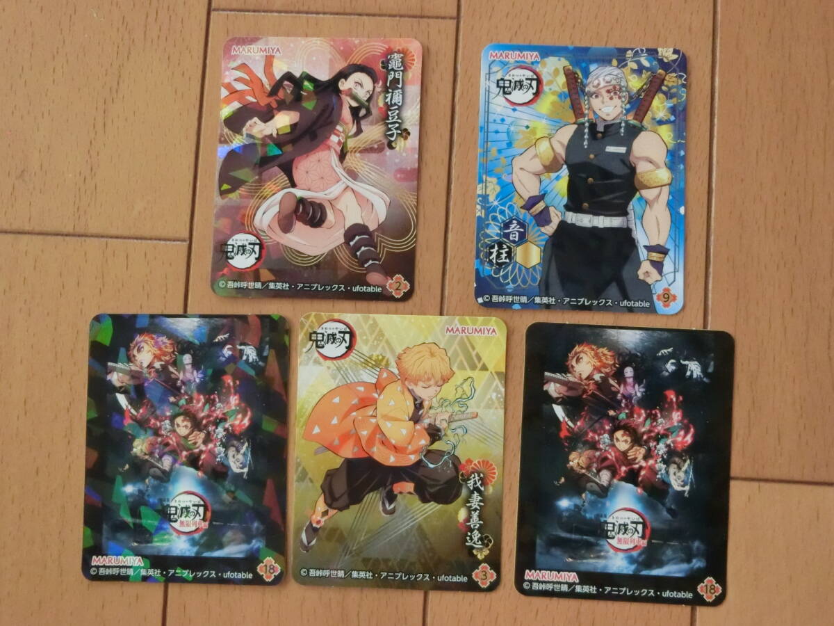 - 5枚 鬼滅の刃 丸美屋 キラキラシール 2 3 9 18 禰豆子 善逸 炭治郎 伊之助 宇髄天元 煉獄杏寿郎 無限列車編 魘夢 えんむ ステッカー