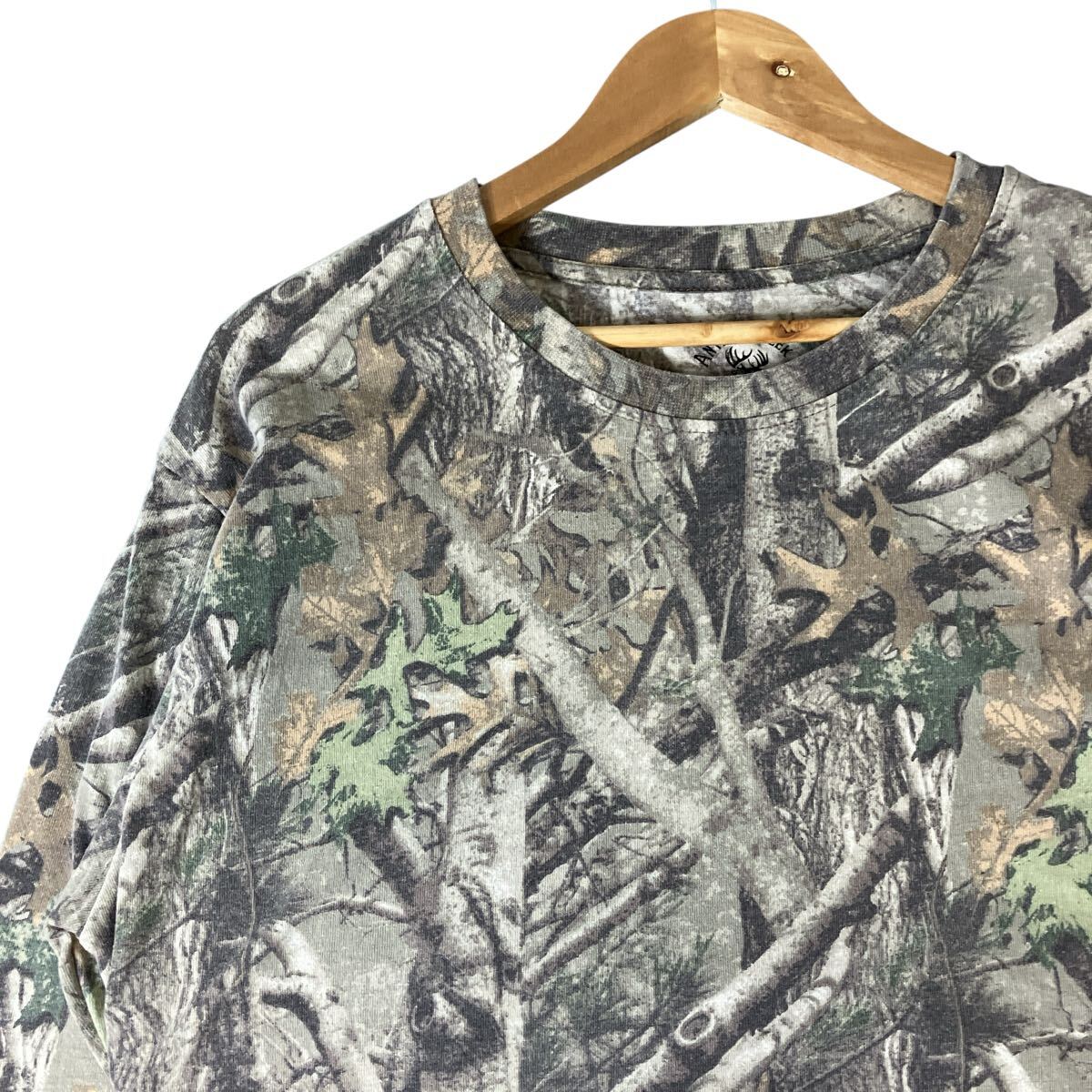 > リアルツリー 00s 長袖Tシャツ ロンT ロングスリーブTシャツ 迷彩 カモフラ ツリーカモ XLビッグシルエット 古着ツリーカモ 色褪せフェード