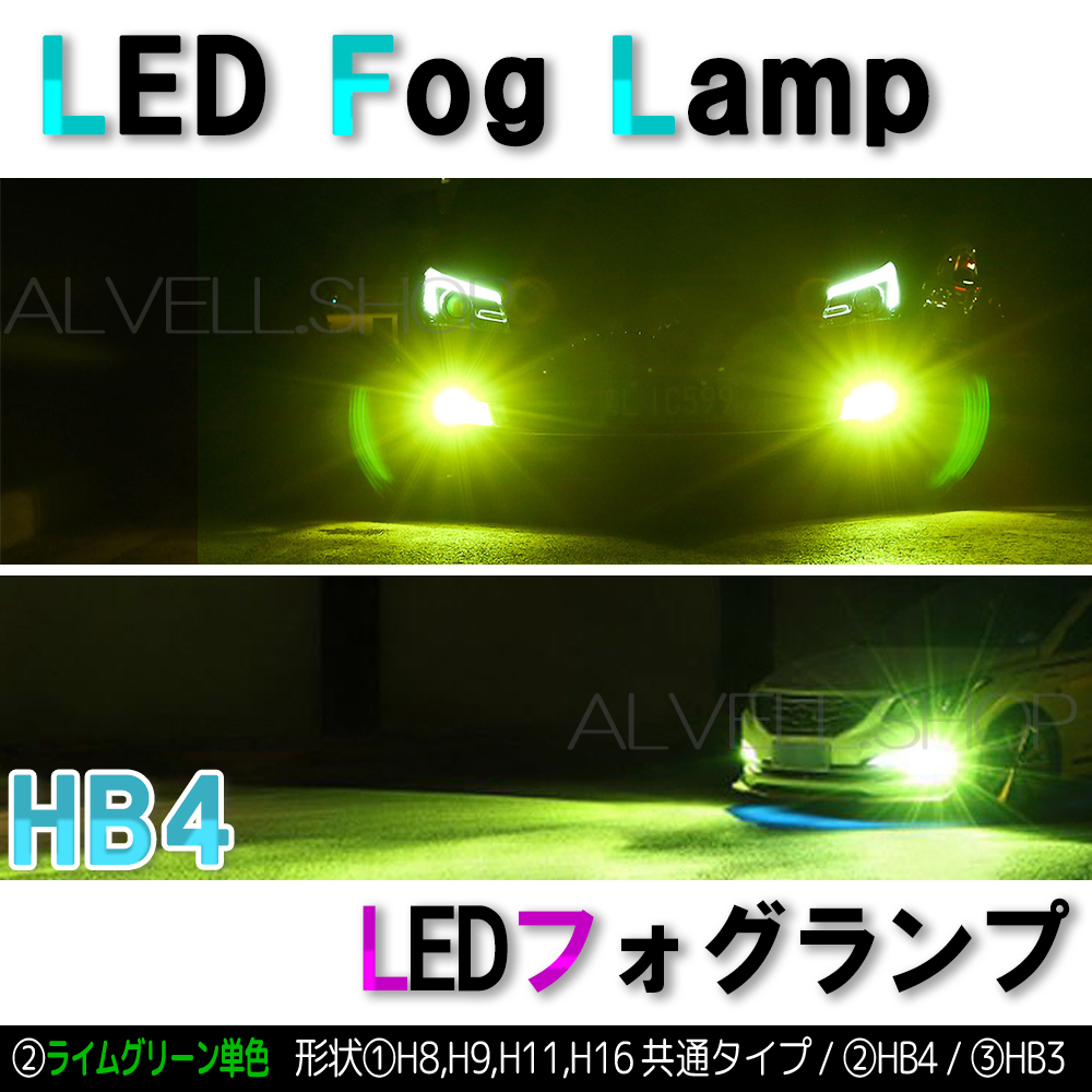 > ライムグリーン LEDフォグランプ HB4 爆光 レモングリーン 青緑 ライムグリーン 爆光 フォグ ライト 緑 新品