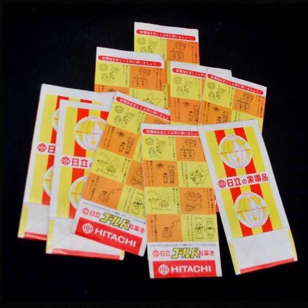 > ●1992●昭和の当時モノ!、レトロな趣き ◆ 日立ゴールド乾電池 販売用袋 10 枚 ◆ ちょっとした洒落心で演出しましょう。