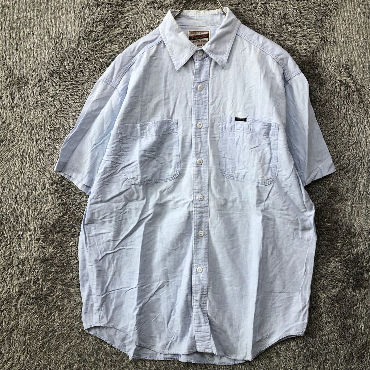 > Wrangler ラングラー 半袖シャツ デニムシャツ サイズM ブルー 青 メンズ トップス 最落なし (Y2)