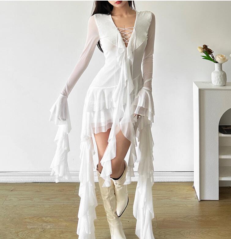 - M0804 ワンピースレディース● 20代30代40代 sexy 着心地抜群● 大活躍 長袖 white