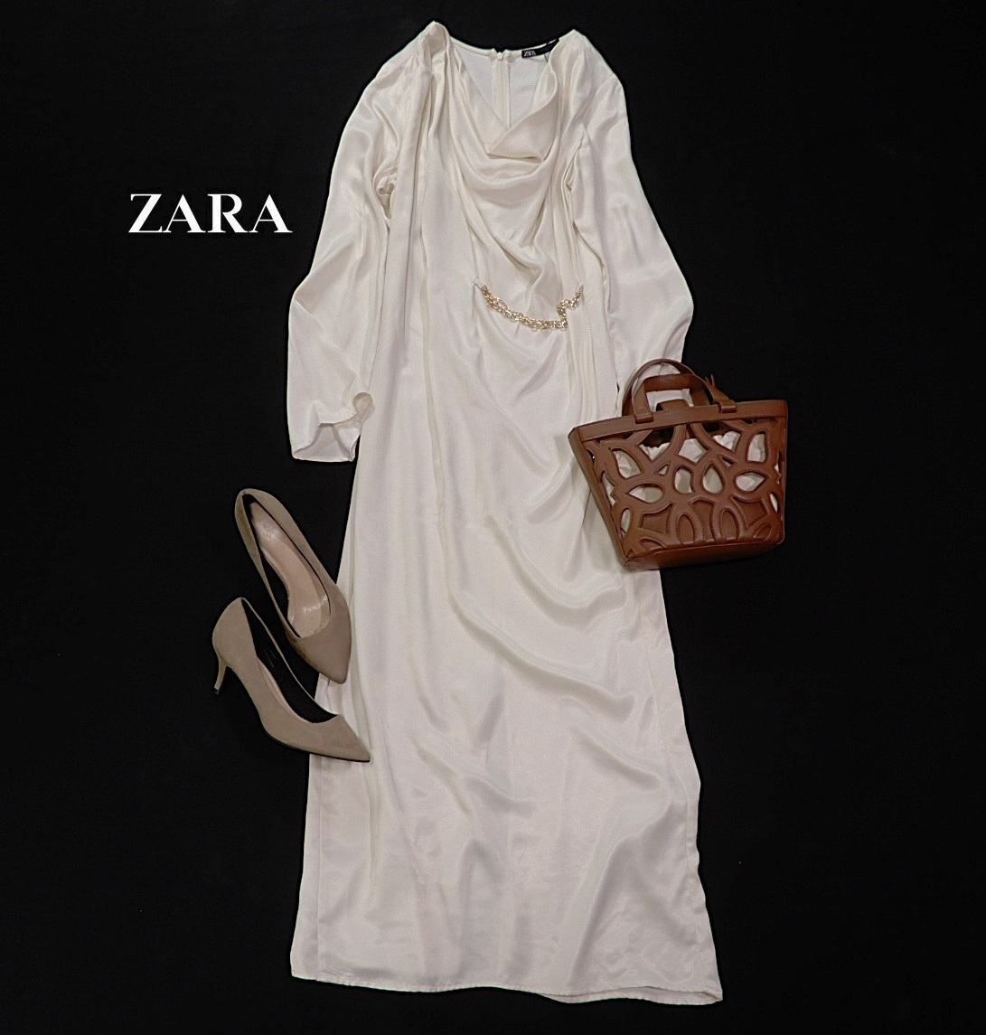 - 未使用 ザラ ZARA 大人素敵スタイル☆チェーン付 微光沢 ドレープ ドレス ワンピース XS
