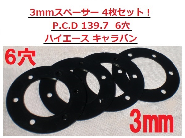 - 4枚セット!3mm スペーサー ハイエース 6H 6穴 PCD139.7 セットアップスペーサー ツライチ ワイドトレッド ワイトレ キャラバン パジェロ