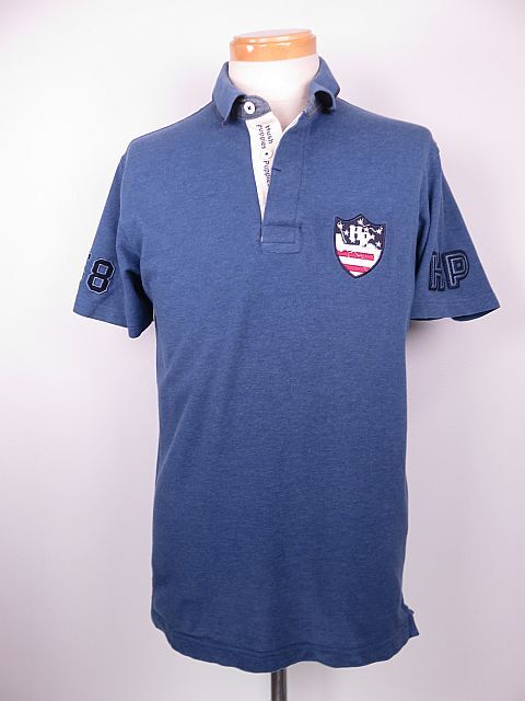 - 【送料無料】ハッシュパピー 半袖ポロシャツ ワッペン付き ブルー L