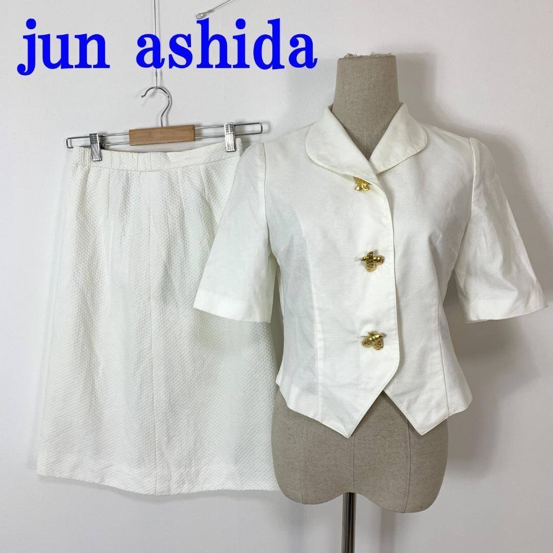 - ジュンアシダ 半袖セットアップ スカートスーツjun ashida ジュンアシダ コットン レーヨン 白 9 11 C3581