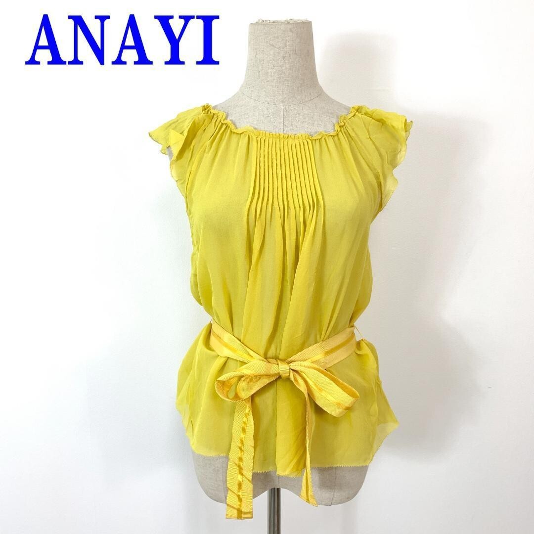 - アナイ ノースリーブブラウス イエロー ANAYI 黄色 ウエストリボン付シルク100% 38 C3724